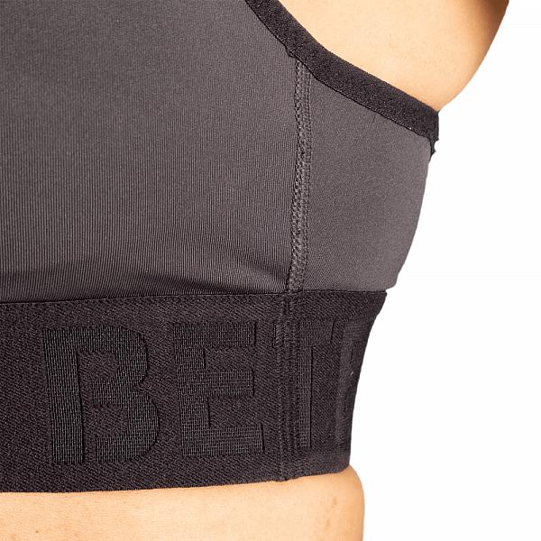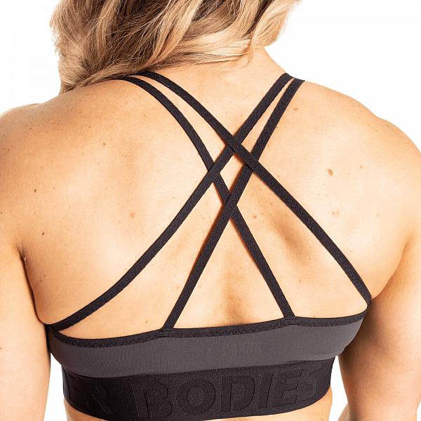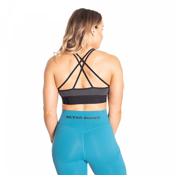 Er hat elastische Schultergurte, die auf der Rückseite kreuz und quer verlaufen und zusammen mit dem geprägten Better Bodies Gummiband, unter der Brust, einen einzigartigen Look und eine bequeme Passform garantieren.